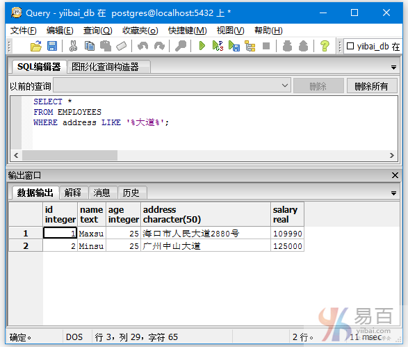PostgreSQL LIKE条件与WHERE子句一起用于从指定条件满足LIKE