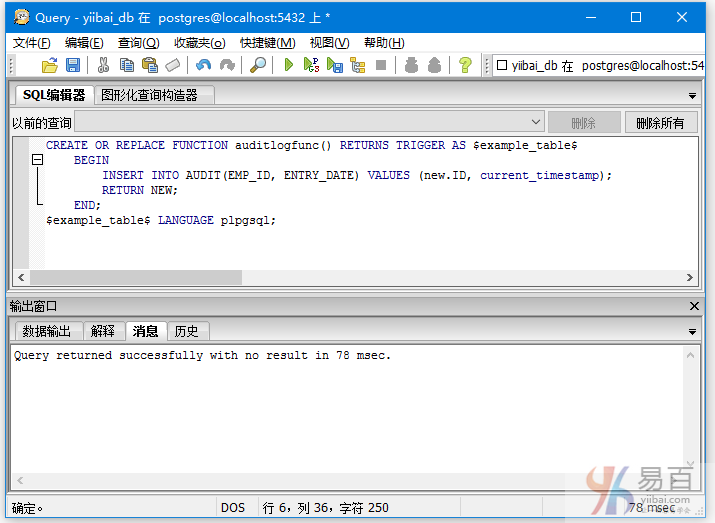 表上创建触发器之前,首先创建一个名为auditlogfunc()