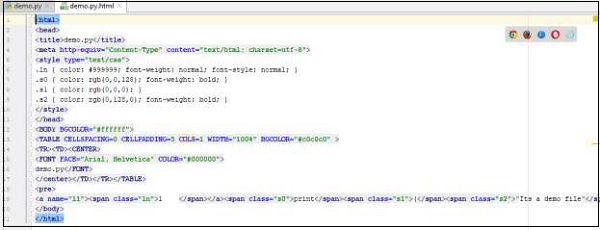 PyCharm IDE包含将现有代码文件转换为HTML格式或CSV格式的各种功能。 在本章中,您将学习使用PyCharm IDE导出数据。