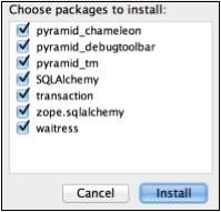 用户可以默认设置项目的解释器和Python位置,选择脚手架和模板语言。 Pyramid框架中的脚手架使用URL调度来映射URL并查看代码和SQLAlchemy以获得持久性属性。
