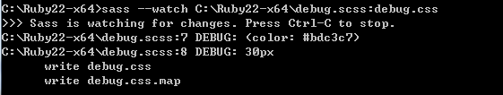 sass --watch C:Ruby22-x64debug.scss:debug.css