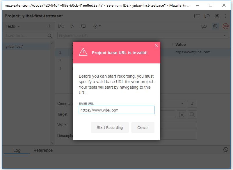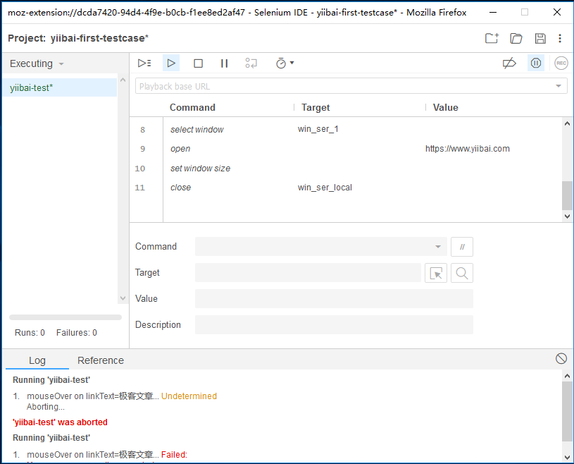 Selenium IDE第一个测试用例