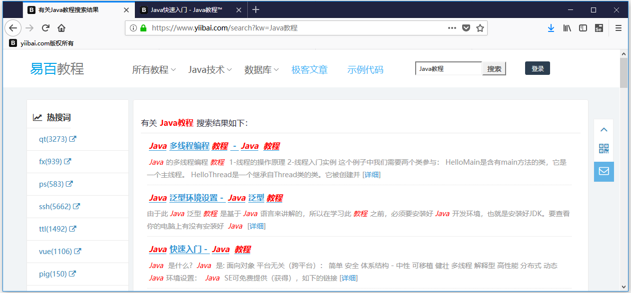 - 在搜索框中输入:Java教程 ,然后搜索。