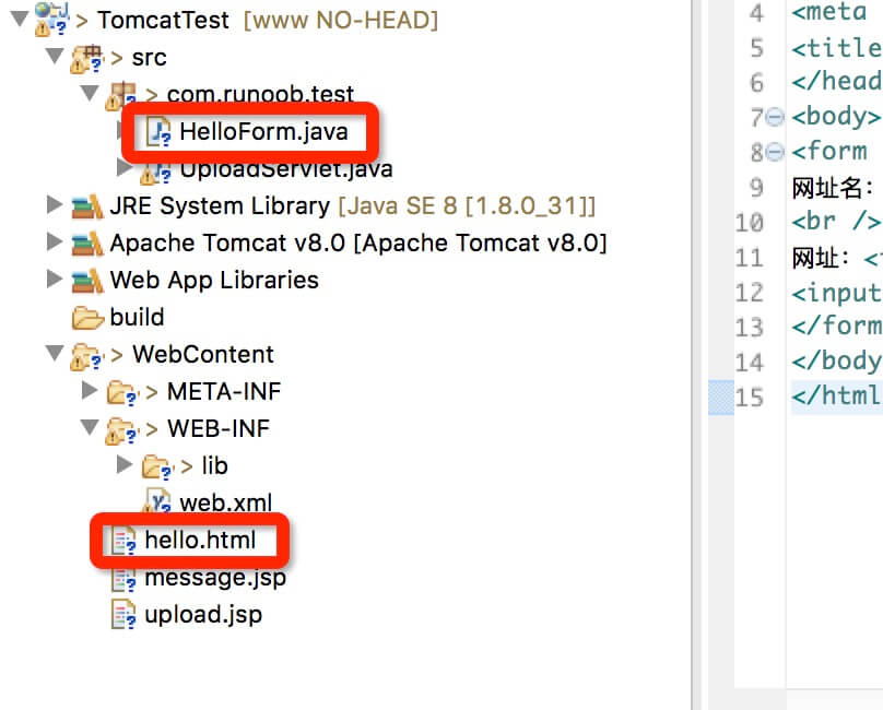 <?xml version="1.0" encoding="UTF-8"?> <web-app> <servlet> <servlet-name>HelloForm</servlet-name> <servlet-class>com.bootwiki.test.HelloForm</servlet-class> </servlet> <servlet-mapping> <servlet-name>HelloForm</servlet-name> <url-pattern>/TomcatTest/HelloForm</url-pattern> </servlet-mapping> </web-app>