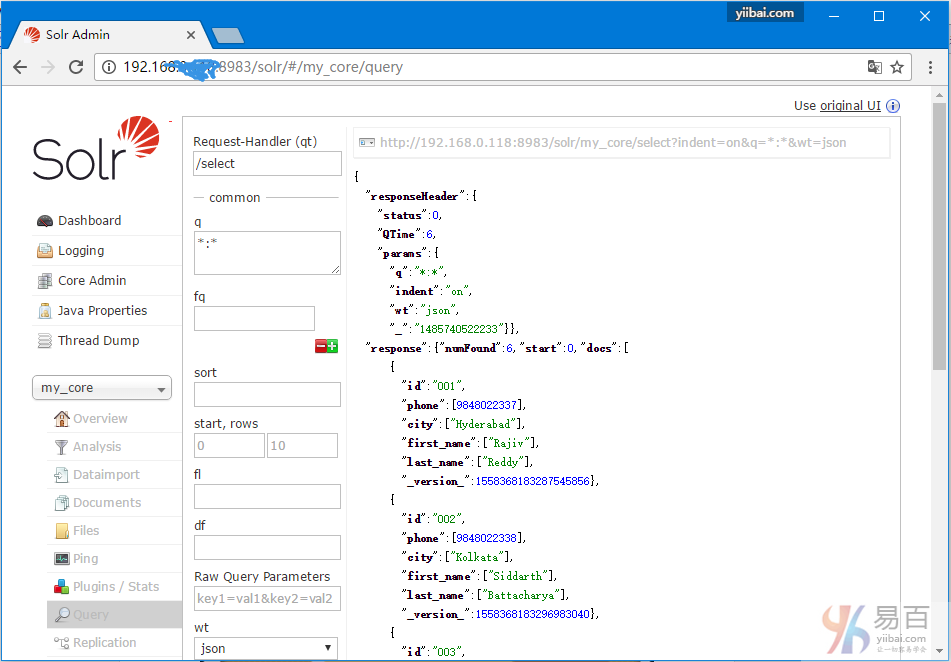 中传递查询“:”来检索所有文档,并执行查询。执行时应该可以观察到所需的数据被添加到Solr索引。