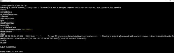 执行命令后,可以在命令提示符中看到BUILD SUCCESSFUL 消息,如下所示 -