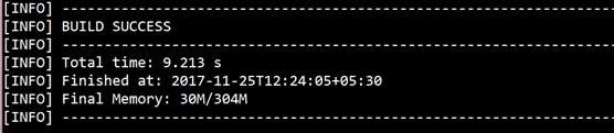 执行命令后,可以在命令提示符下看到 BUILD SUCCESS 的消息,如下所示 -