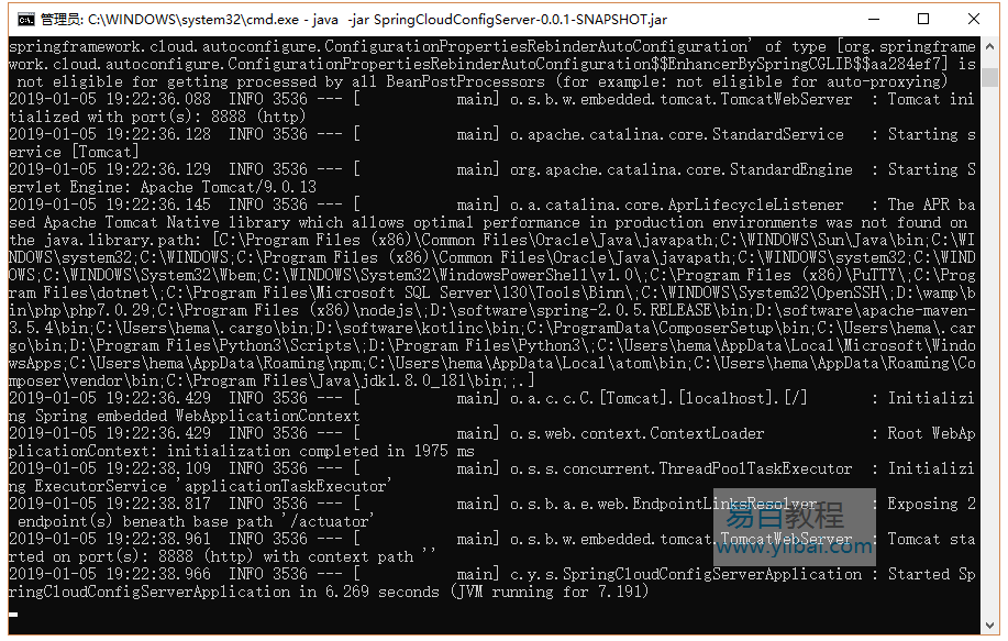 D:workspspringcloudSpringCloudConfigServertarget> java -jar SpringCloudConfigServer-0.0.1-SNAPSHOT.jar