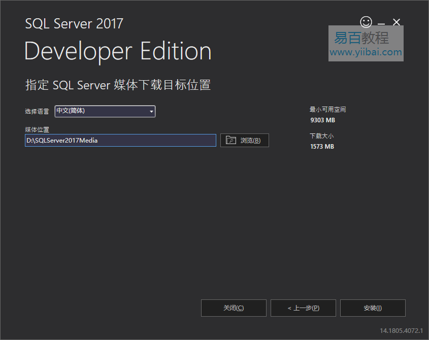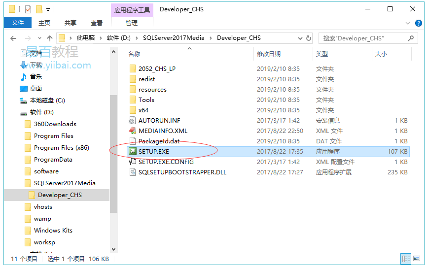 下载完成后,双击文件SQLServer2017-SSEI-Dev.exe 以启动安装程序。