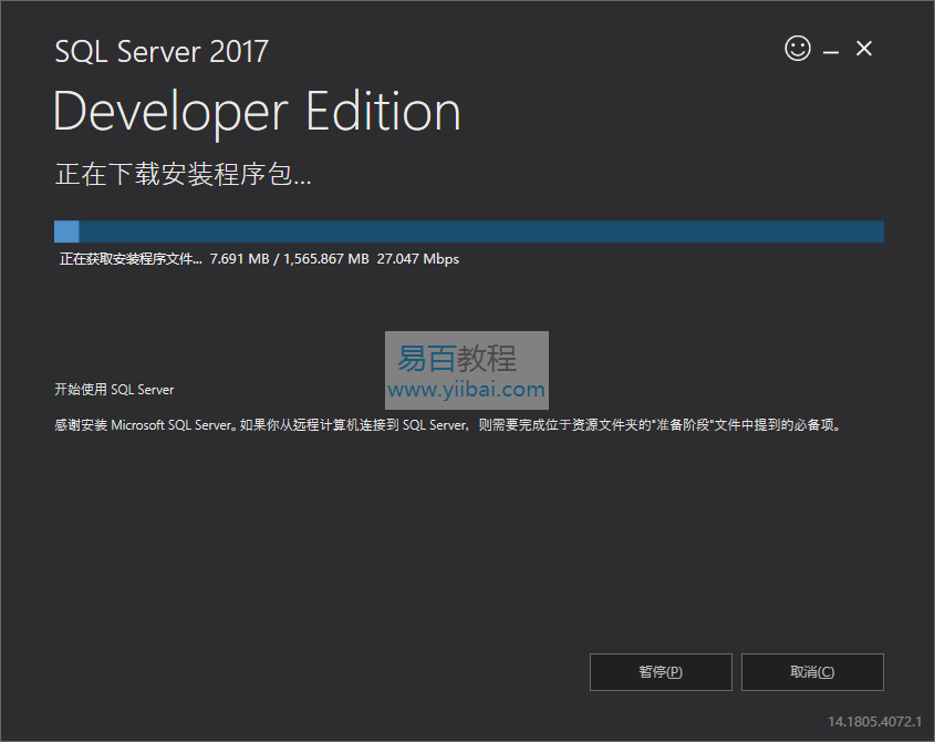 安装程序开始下载安装包,需要一段时间。
