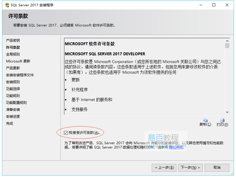 选择“我接受许可条款”,然后单击“下一步”按钮。