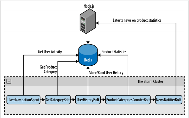 Storm 集群生成关于用户浏览的有用数据,并把它们的产品 ID 保存在一个名为 “prodcnt” 的Redis hash 中。