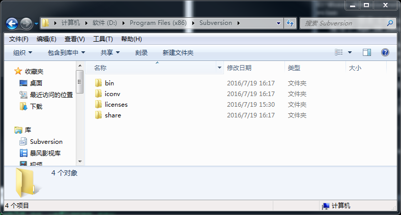 2、下载完成后,在相应的盘符中会有一个Setup-Subversion-1.8.16.msi的文件,目前最新的版本是1.8.16, 这里就使用这个版本。然后双击安装文件进行安装。我们指定安装在D:\Program Files (x86)\Subversion目录里。
