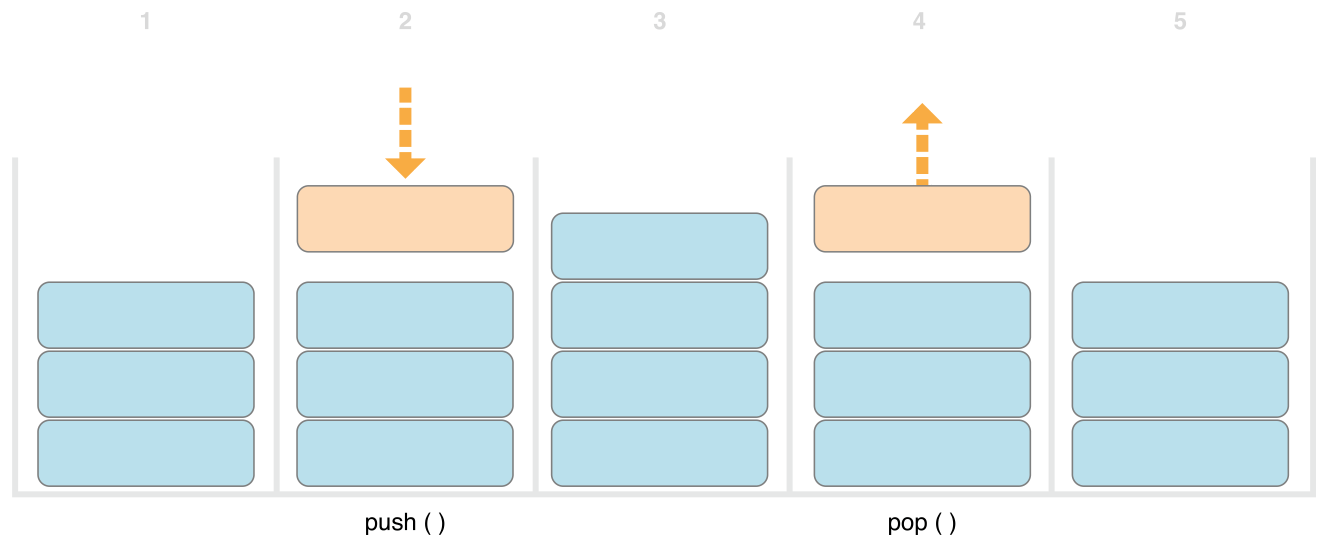 - 现在有四个值在栈中,最近入栈的那个值在顶部。