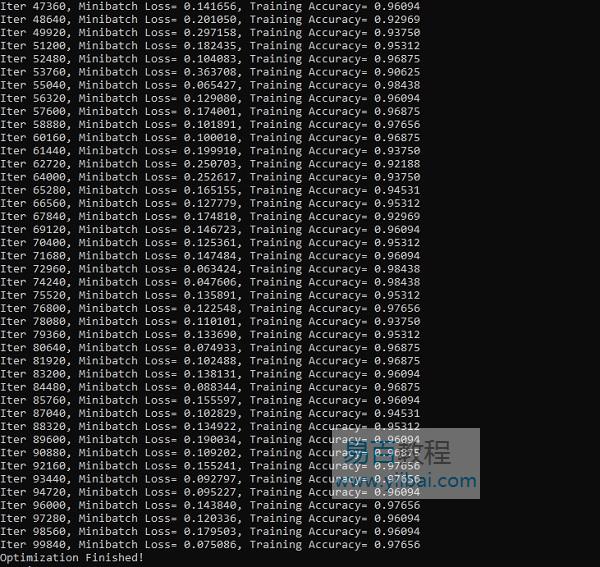 print("Iter " + str(step*batch_size) + ", Minibatch Loss {:.6f}".format(loss) + ", Training Accuracy= {:.5f}".format(acc))