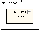 物件是软件开发过程中的产物,包括过程模型(比如用例图、设计图等等)、源代码、可执行程序、设计文档、测试报告、需求原型、用户手册等等。物件表示如下,带有关键字 artifact 和文档图标