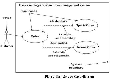 SpecialOrder 和NormalOrder 从订单使用情况扩展。因此,他们扩展了关系。另外很重要的一点是确定系统边界,这是图中所示。参与者是客户以外的系统,因为它是系统的外部用户。