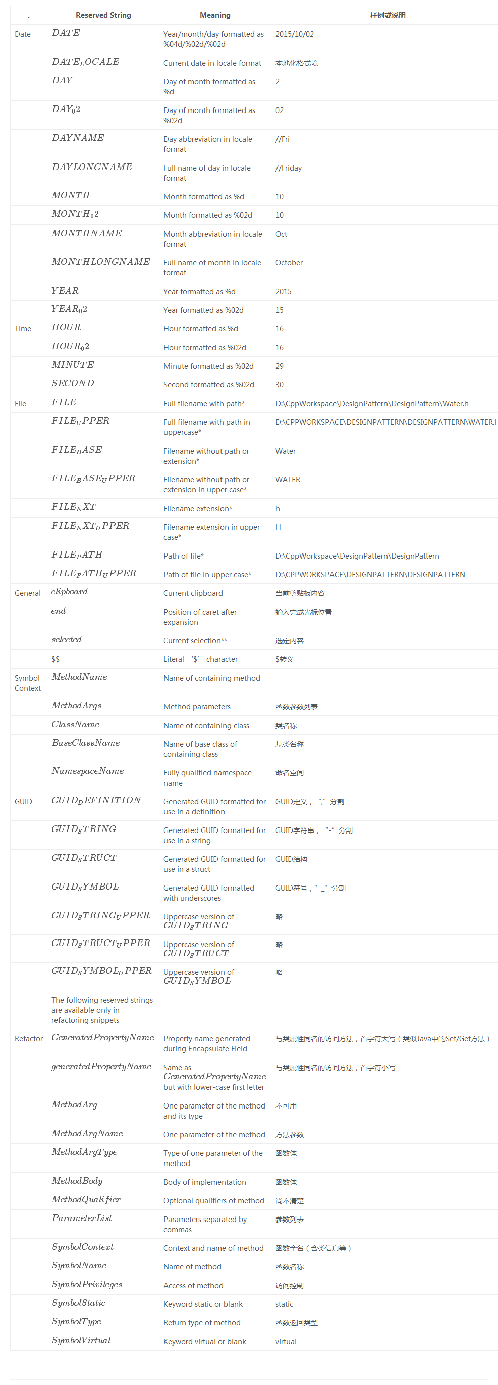 符号之间的内容都是 VAssistX 中定义的宏,参见文后的附录:Visual Assist X Snippets 宏