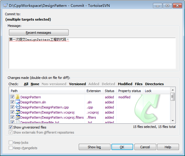 - 对话框的底部会显示你要提交的所有文件,你可以勾选要提交或不提交哪些文件。写上你提交的原因或备注(这个很重要,一定要有这样的习惯,以便后期查看历史记录时一看就能知道你做了什么),然后点击 Ok 就可以了。