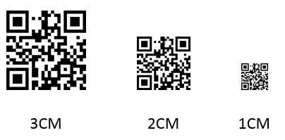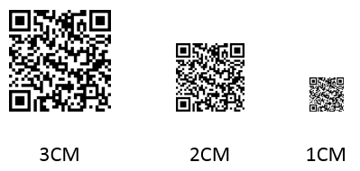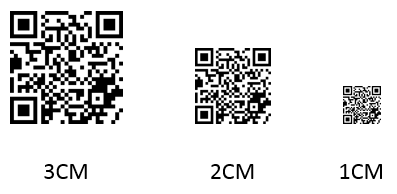示例1:extinfo参数≤4个字符,使用版本2的二维码类型,25*25的矩阵,不同尺寸的印刷效果。