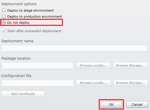选择 Do Not Deploy。最后点击 OK 按钮完成创建: