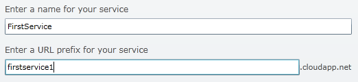 在标记为 Enter a name for your service 的文本框里输入服务名称,在标记为 Enter a URL prefix for your service 的文本框里输入一个 URL前缀来指定它的 URL: